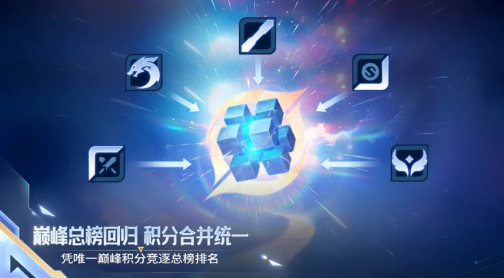 巅峰赛优化:巅峰赛五路积分归拢,巅峰总榜总结,总榜前一万名获取巅峰王者奖励。