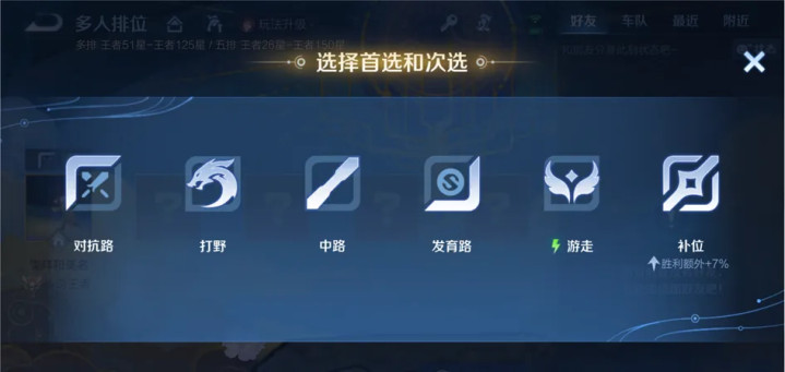 2、匹配时,顶部会袒露本人的平均段位,如若是组队多排的话,平均段位会有加权猜度。也即是高段位玩家会拉高队列的平均段位,即王者11星和王者1星组队,本人的加权平均段位为王者7星,高于平直猜度得来的(11+1)/2=6星,这亦然为了减少双排带来的炸鱼局。