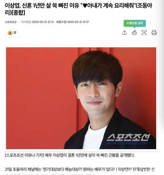 演员李相烨在前年与圈外女友成亲后,不仅新婚生涯幸福甜密,时常在节目上共享婚青年涯的他,更是知道了许多和爱妻平时的小妻子日常,引起许多盘考。