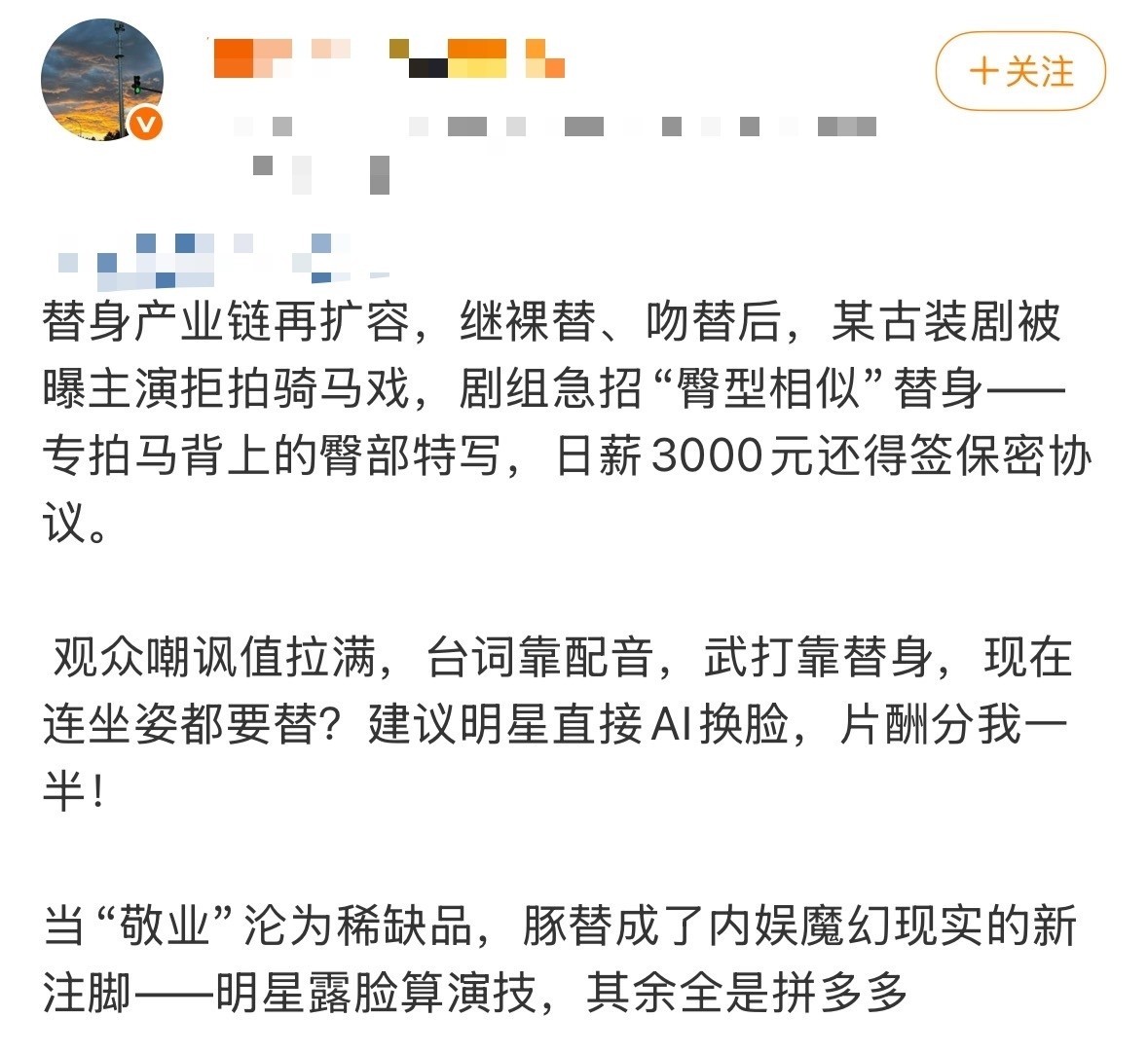 此类情况在文娱圈层见叠出,“终结使用替身”一度从基本管事操守形成了加分项。