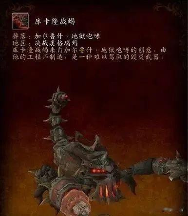 2、完成确立“引颈潮水:加尔鲁什地狱怒吼”确立,就可能掉落“库卡隆的战蝎”