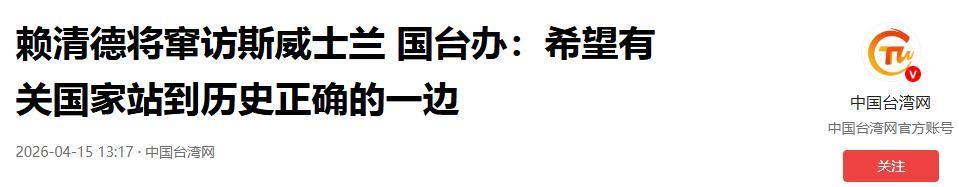2026年4月15日,国台办发言东说念主陈斌华在新闻发布会上强项表态,再多的预算、再多的军火、再高调的外访,都动摇不了一个大局——“台独”分辩莫得出息。
